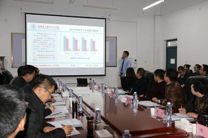 11月30日上午,蘭州交通大學(xué)2017年度學(xué)生工作考核組馬軍黨一行及各二級(jí)學(xué)院主管學(xué)生工作負(fù)責(zé)人在武威校區(qū)考核了新能源與動(dòng)力工程學(xué)院2017年度學(xué)生工作??己爽F(xiàn)場(chǎng)會(huì)由學(xué)生工作考核組組長(zhǎng)、副校長(zhǎng)馬軍黨主持。新能源學(xué)院領(lǐng)導(dǎo)及學(xué)生管理工作人員參加了考核會(huì)。