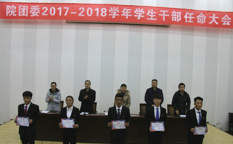 會上,院團委宣讀了《關于2017-2018學年武威職業(yè)學院學生會干部任職的決定》《關于共青團武威職業(yè)學院委員會學生助理任職的決定》《關于武威職業(yè)學院第十一屆學生社團聯合會學生干部任職的決定》,為學生干部代表頒發(fā)了聘書。