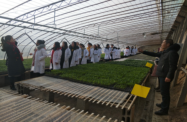 金大鵬專業(yè)合作社張經理帶領師生參觀了自動化育苗生產車間、育苗大棚等。參觀過程中,張經理向學生詳細介紹了自動化育苗的流程、自動化灌溉設施、引進的蔬菜新品種、溫室管理新技術等。藍天花卉公司袁經理向學生介紹了常見的花卉品種及生活習性,學生們邊走邊看邊記,學習熱情異常高漲,真正實現(xiàn)了在做中學,學中做。