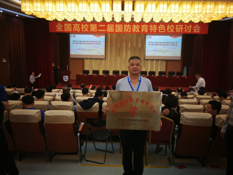 在會(huì)上,中國高等教育學(xué)會(huì)國防教育工作委員會(huì)組委會(huì)向?qū)W院頒發(fā)了“全國國防教育特色學(xué)校”牌。