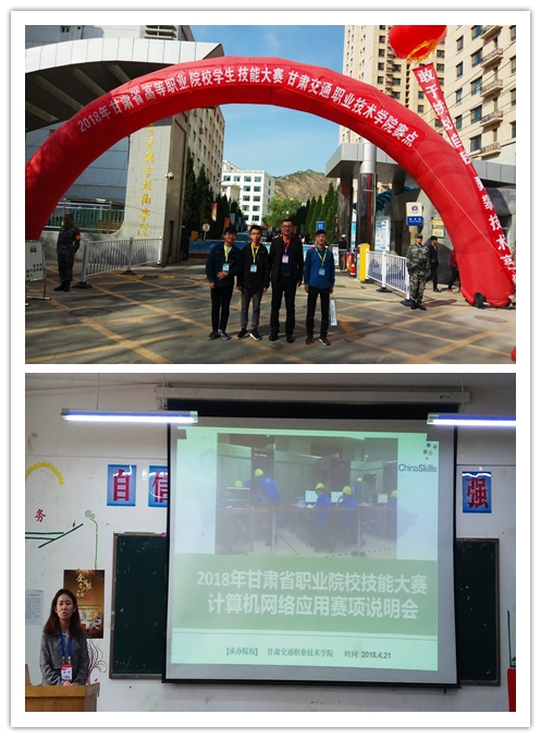4月21日—22日,2018年甘肅省高等職業(yè)院校技能大賽“計(jì)算機(jī)網(wǎng)絡(luò)應(yīng)用”賽項(xiàng)在甘肅交通職業(yè)技術(shù)學(xué)院賽點(diǎn)順利舉行?!坝?jì)算機(jī)網(wǎng)絡(luò)應(yīng)用”賽項(xiàng)的參賽院校為12所,共有參賽隊(duì)21個(gè)。我系參賽隊(duì)由2017級(jí)計(jì)算機(jī)網(wǎng)絡(luò)技術(shù)大專班學(xué)生畢浩、張向東、趙明明三位同學(xué)組成,指導(dǎo)老師史子新、唐宗舜。