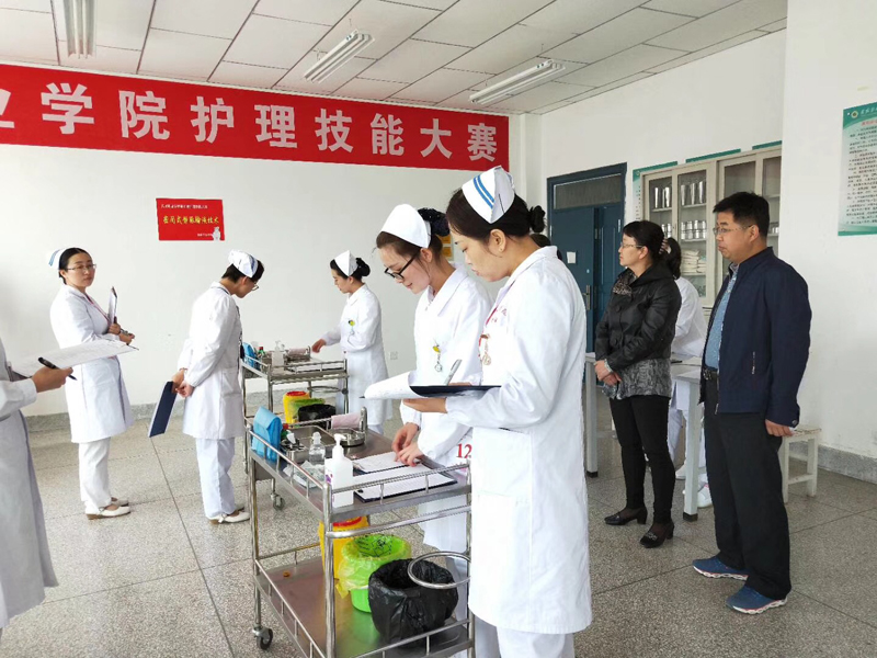 為提高實踐教學質量和學生的技能操作水平,學院于4月28日舉辦了第五屆護理技能大賽,16級護理、助產(chǎn)兩個專業(yè)的72名同學參加了競賽,學院副院長田迎春、護理系黨總支書記張建輝、護理系主任韓曉萍在現(xiàn)場觀看了此次比賽。