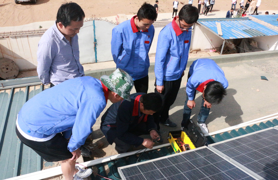 6月2日,能源工程系黨總支組織全體黨員教師和學(xué)生入黨積極分子前往位于古浪縣西靖鎮(zhèn)的生態(tài)移民點(diǎn)圓夢(mèng)新村開(kāi)展“光伏扶貧,技術(shù)到戶”主題黨日活動(dòng)。