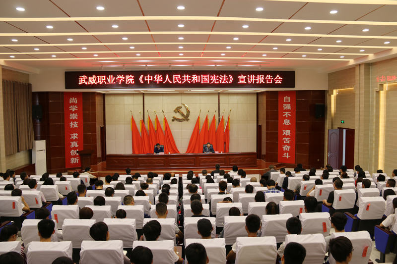 為深入推進(jìn)《中華人民共和國(guó)憲法》和《中華人民共和國(guó)憲法(修正案)》學(xué)習(xí)宣傳,提高廣大師生“學(xué)習(xí)憲法、尊崇憲法”的自覺性,6月7日,武威職業(yè)學(xué)院組織開展專題宣講活動(dòng),邀請(qǐng)市檢察院檢委會(huì)專職委員郝建宏檢察官來(lái)學(xué)院作宣講報(bào)告。學(xué)院領(lǐng)導(dǎo)班子成員,副科級(jí)以上干部及師生代表共220余人參加了宣講報(bào)告會(huì)。報(bào)告會(huì)由黨委副書記趙明主持。