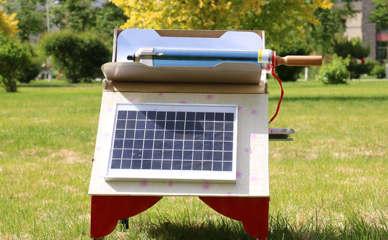 “六自由度撿球機器人”作品是基于STM32F103的六自由度機械臂,運用D-H法對機械臂進行數(shù)學建模,通過MatLab構(gòu)建運動仿真模型,通過軟件編程實現(xiàn)機械臂的單自由度、多自由度及基本的運動規(guī)劃功能的機器人?!疤柲墉h(huán)保烤爐”是一款基于太陽能光熱、光伏利用的新型太陽能環(huán)??緺t。用戶可將食物切成小塊用錫紙包裹后,放置于烹飪抽屜之中,烹飪抽屜置于真空集熱管中,通過槽型拋物面聚光集熱器聚焦太陽直射光,產(chǎn)生高溫,加熱真空集熱管里面的食材。這種烤爐綠色、健康,節(jié)能、環(huán)保、熱效率高。
