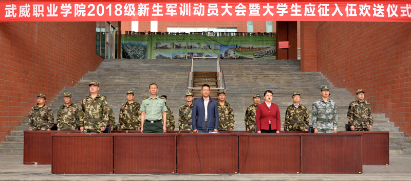 9月5日上午,武威職業(yè)學(xué)院2018級(jí)新生軍訓(xùn)動(dòng)員大會(huì)暨大學(xué)生應(yīng)征入伍歡送儀式在大學(xué)生活動(dòng)中心廣場舉行。學(xué)院副院長王永緒、田迎春,涼州區(qū)武裝部副部長韓小偉,工程防化第76旅副營長夏科銀出席儀式。承訓(xùn)單位工程防化第76旅45名戰(zhàn)士,學(xué)院學(xué)工處處長,各系黨總支書記、輔導(dǎo)員、班主任,2018級(jí)全體學(xué)生參加了大會(huì)。儀式由田迎春主持。