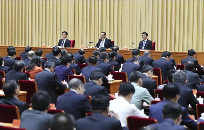 李克強(qiáng)在會(huì)上講話。汪洋、王滬寧、趙樂際、韓正出席會(huì)議。