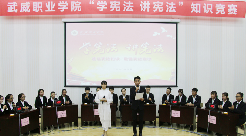 9月12日晚,院學(xué)生會(huì)在正德廳舉辦“學(xué)憲法、講憲法”知識(shí)競(jìng)賽,組織人事處副處長(zhǎng)魏全民、宣傳統(tǒng)戰(zhàn)部副部長(zhǎng)史子新、院團(tuán)委副書記高鵬堂及200多名學(xué)生代表觀看了比賽。