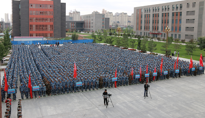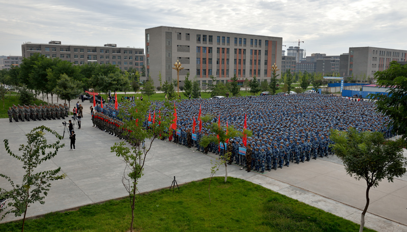 大會現(xiàn)場,田迎春向承訓單位授予軍訓團旗。大會在雄壯的《中國人民解放軍軍歌》聲中拉開了軍訓序幕。
