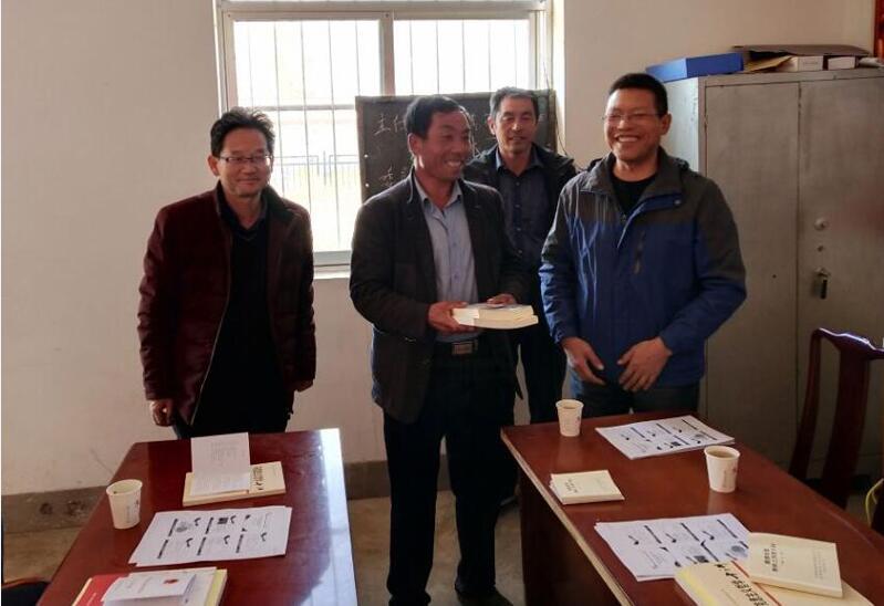 黨課結(jié)束后,趙明書記和王永緒副院長向村委會贈送了《習(xí)近平的七年知青歲月》《習(xí)近平新時(shí)代中國特色社會主義思想三十講》《怎樣做合格黨員》《馬克思主義哲學(xué)十講》《中華人民共和國憲法宣傳手冊》等書籍。