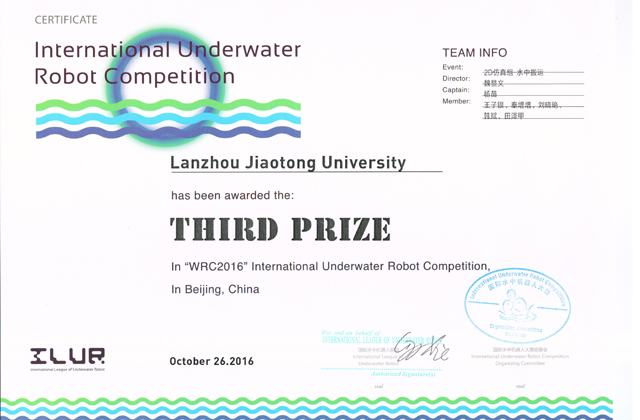 新能源學院代表隊在2016國際水中機器人大賽中獲獎