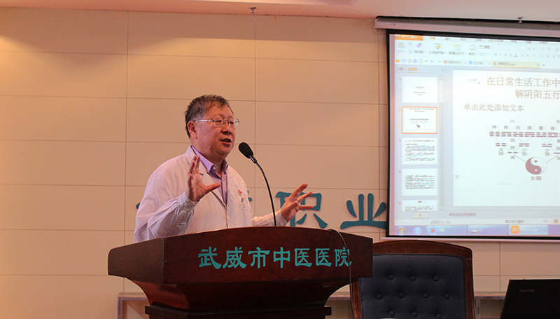 為了提高全院護(hù)理人員的中醫(yī)基礎(chǔ)知識水平, 12月12日下午,學(xué)院附屬中醫(yī)院護(hù)理部在內(nèi)科七樓會議室舉辦護(hù)理人員中醫(yī)基礎(chǔ)知識學(xué)習(xí)會。會議邀請康復(fù)中心主任,中醫(yī)針灸主任醫(yī)師張國忠為全院150多名護(hù)理工作者作題為《在日常生活中如何應(yīng)用理解陰陽五行》的中醫(yī)知識講座。
