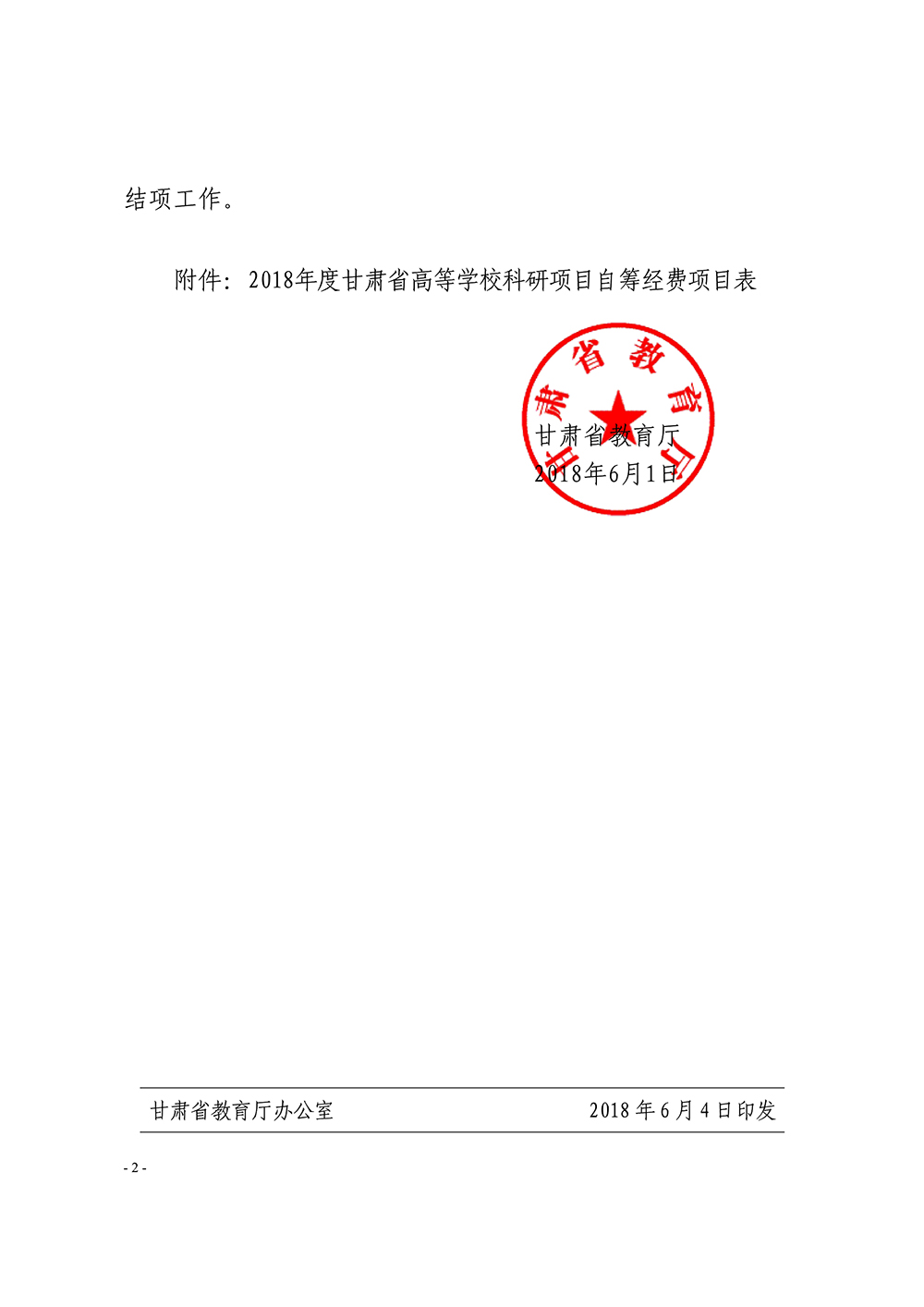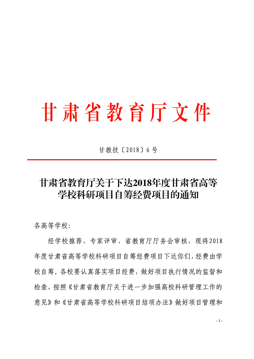 甘肅省教育廳關(guān)于下達(dá)2018年度甘肅省高等學(xué)??蒲许椖孔曰I經(jīng)費(fèi)項目的通知