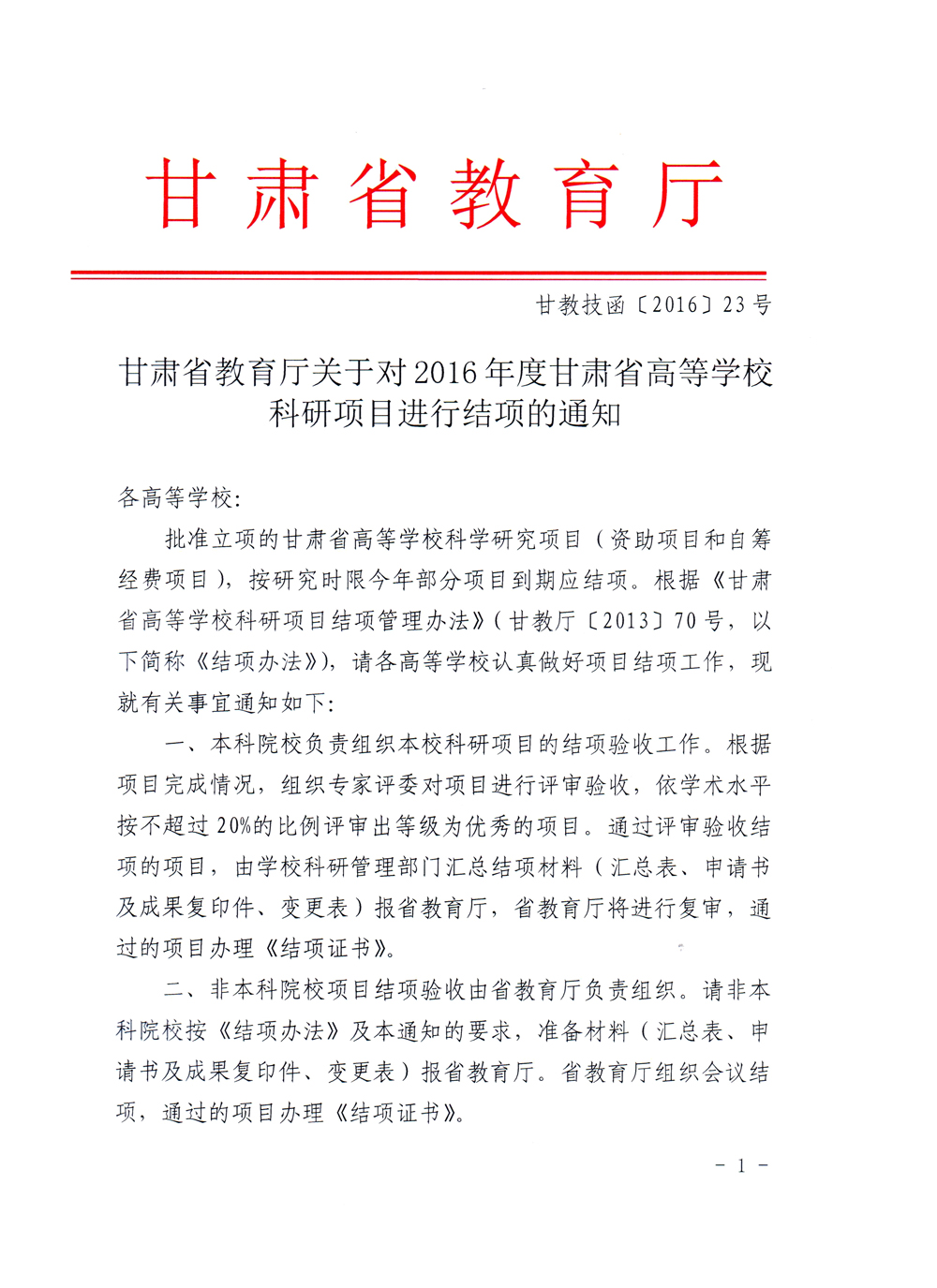 轉發(fā)甘肅省教育廳《關于2016年度甘肅省高等學??蒲许椖拷Y項的通知》