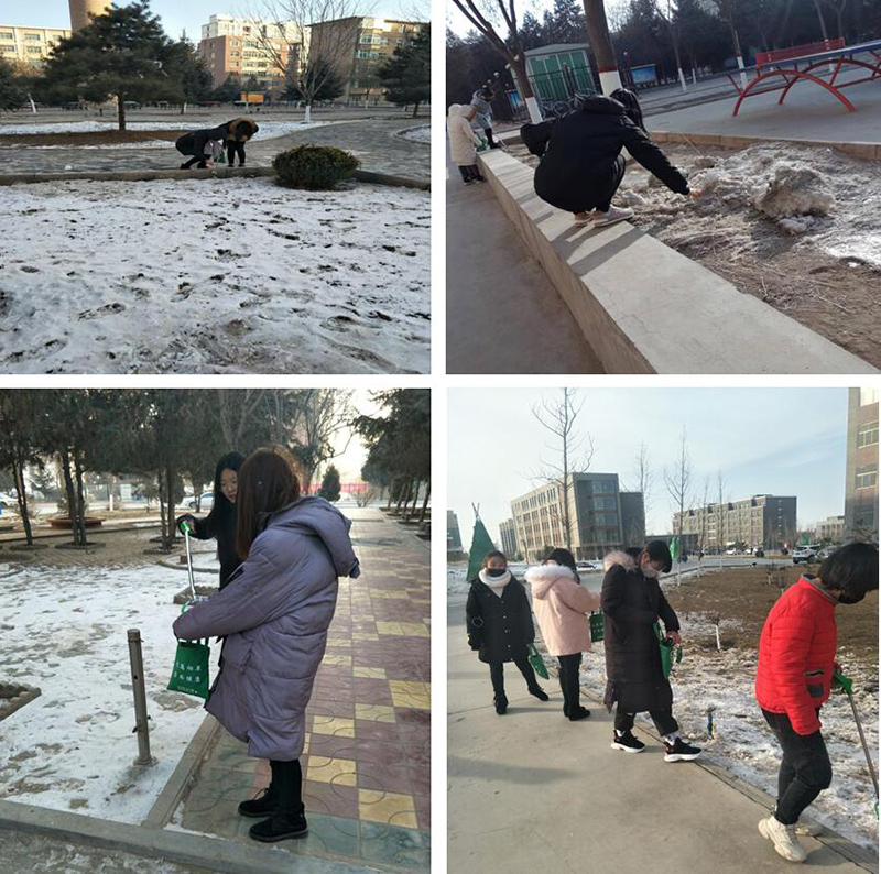 活動(dòng)期間,由系輔導(dǎo)員齊斌文老師和班主任帶領(lǐng)同學(xué)們準(zhǔn)備好工具準(zhǔn)時(shí)在各區(qū)域集合,對(duì)校園內(nèi)煙頭、垃圾進(jìn)行撿拾,為全院師生營(yíng)造了良好的學(xué)習(xí)氛圍。