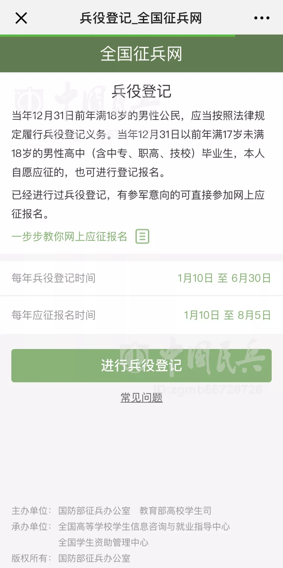 《通知》要求,各級要強化組織領導,調整充實征兵領導小組和辦公室,加強高校征兵工作站建設,建立健全考核上崗制度,提高各級開展征兵工作的能力。要嚴格落實兵役登記制度,及時發(fā)布兵役登記公告,詳細明確登記的時間、對象、方法和要求,依法擇優(yōu)確定預征對象。要廣泛開展征兵宣傳教育,組織“征兵宣傳進校園”“征兵宣傳月”“政策咨詢周”等活動,做到所有高校和大學生“兩個全覆蓋”。
