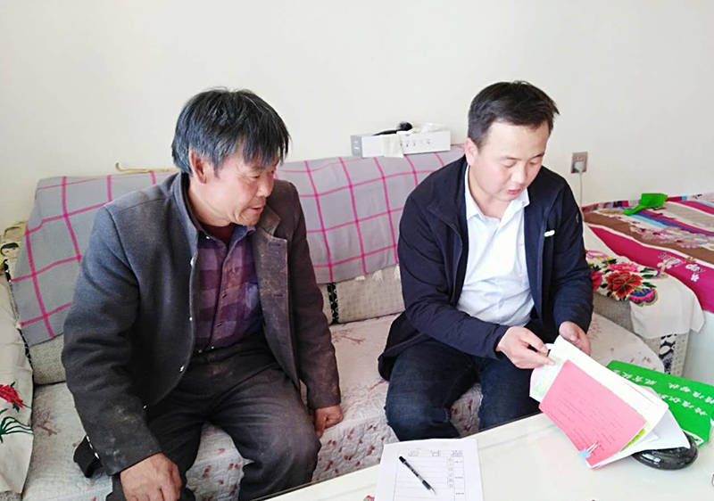 陽春四月,大地復(fù)蘇。迎著和煦的春風(fēng),張富國(guó)與黑松驛鎮(zhèn)政府簽定了學(xué)院對(duì)口健康扶貧古浪縣口腔治療項(xiàng)目協(xié)議書,到幫扶戶張德龍父母家中,看望身患重病的老人,送上慰問品,與他們面對(duì)面交流,關(guān)心他們的生活起居。幫扶干部進(jìn)村入戶與幫扶戶談心溝通,聚焦“兩不愁、三保障”,全面了解家庭情況,認(rèn)真商議脫貧措施和方式,對(duì)“一戶一策”中2018年增收情況和2019年幫扶措施進(jìn)行了溝通認(rèn)可,仔細(xì)算清收入支出賬,有針對(duì)性地完善幫扶舉措,制定完善了符合農(nóng)戶實(shí)情、群眾明白認(rèn)可、能夠具體落地的“一戶一策”,雙方一致認(rèn)為2018年幫扶成績(jī)明顯,2019年幫扶措施切實(shí)可行,并在愉快輕松的氛圍中簽字認(rèn)可。