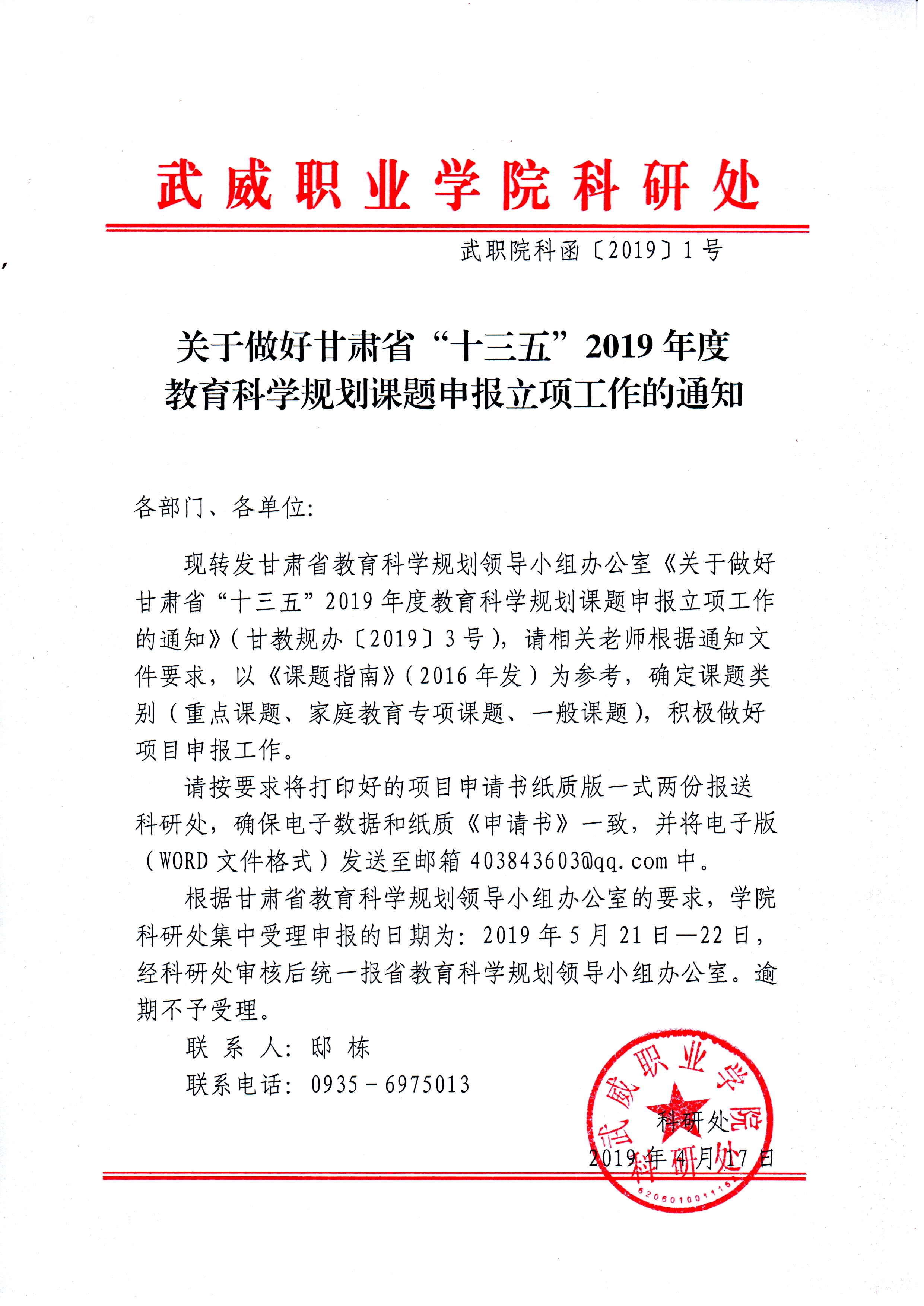 武職院科函〔2019〕8號——關(guān)于2019年院級科研…