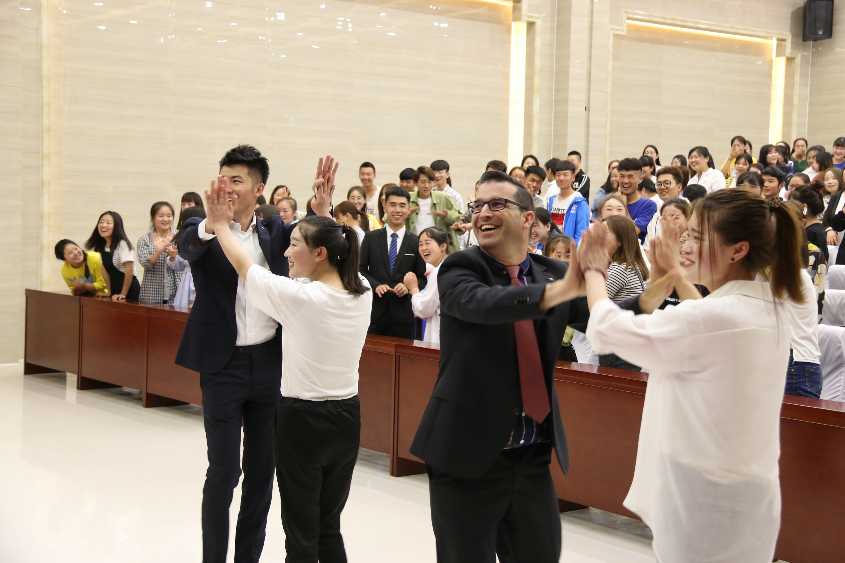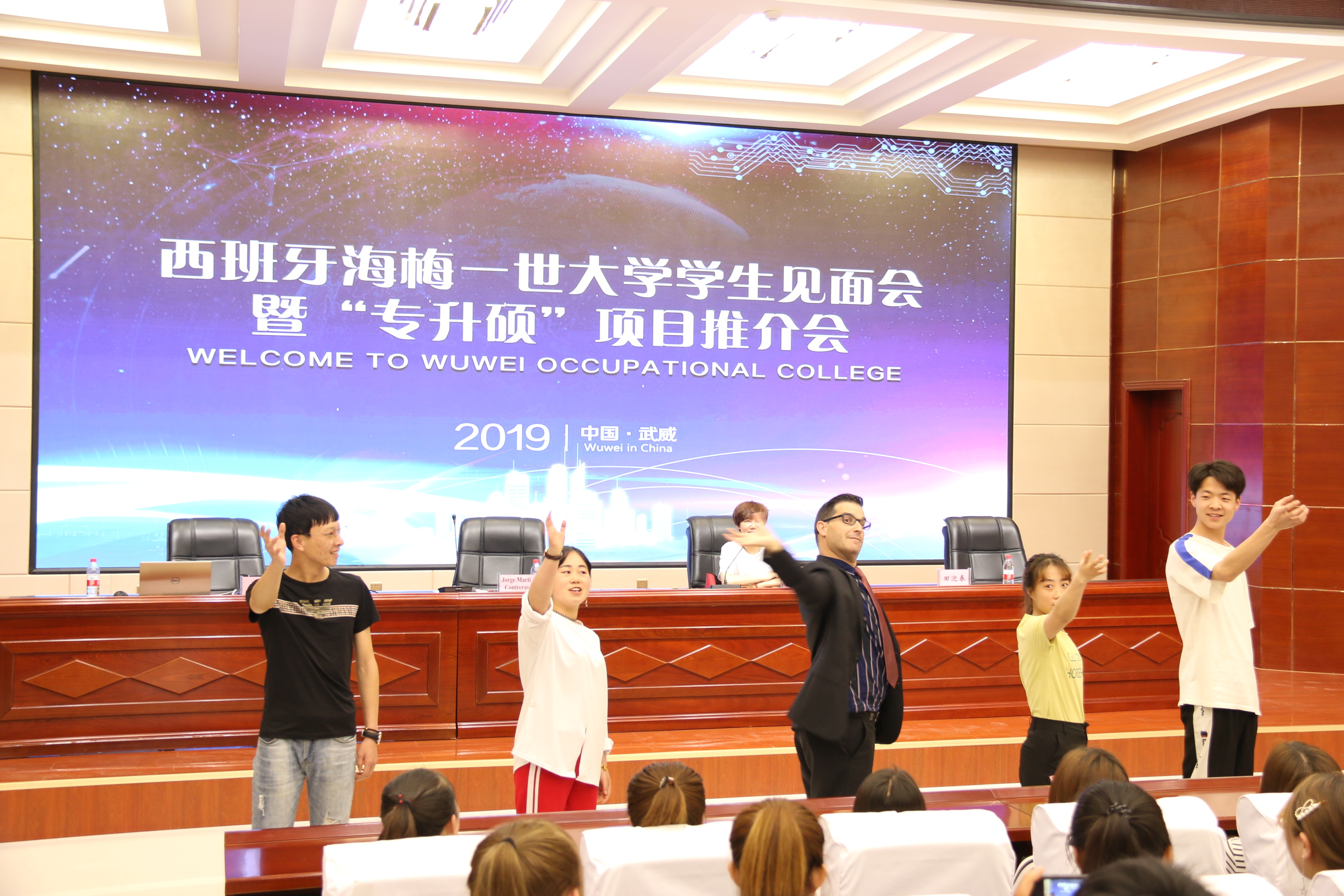 西班牙客人還到菁英廳參加了學(xué)院組織的學(xué)生見面會。Contreras 先生和同學(xué)們進(jìn)行了語言、歌曲、舞蹈雙向互動,讓在場所有同學(xué)體驗(yàn)了濃烈的西班牙異域文化,同學(xué)們近距離感受了西班牙客人的熱情奔放、幽默詼諧。Contreras 先生對學(xué)院學(xué)生的積極主動、大膽參與互動留下了深刻印象。護(hù)理系、人文藝術(shù)教育系、能源工程系、電子信息工程系等系學(xué)生代表參加活動。
