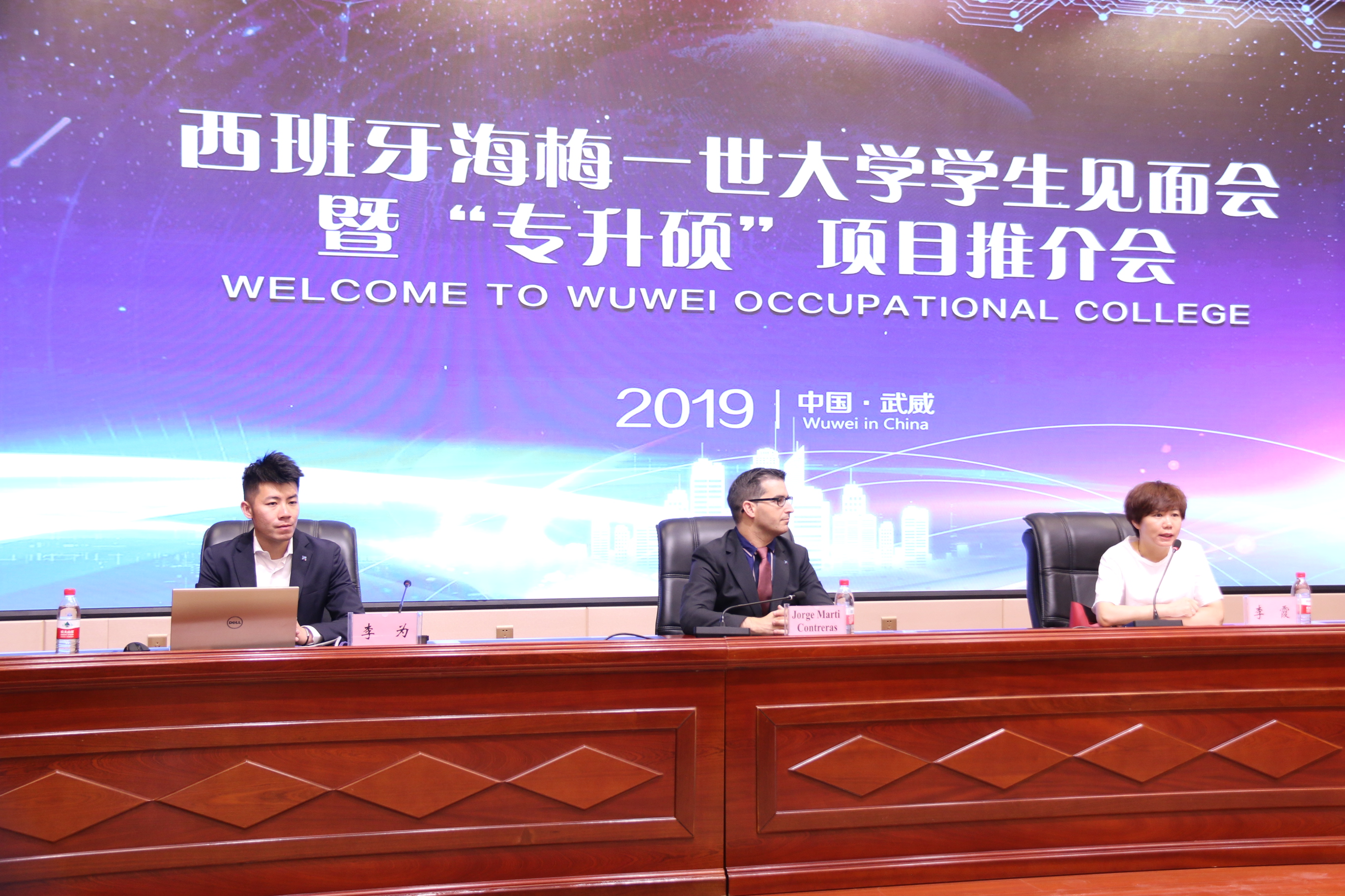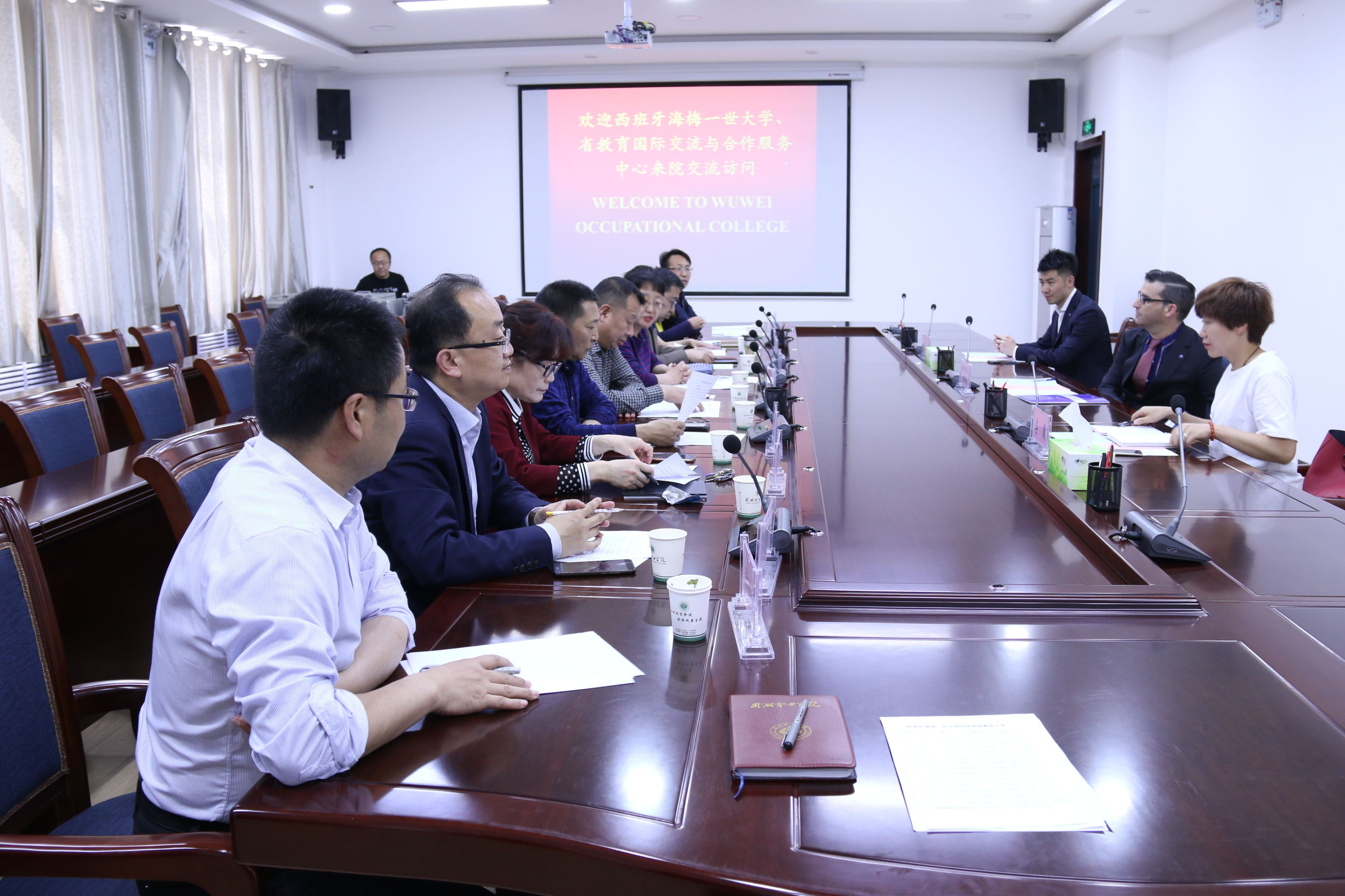 座談會上,田迎春代表全院師生對海梅一世大學(xué)回訪學(xué)院表示歡迎,對海梅一世大學(xué)時隔一年再次訪問學(xué)院表示敬佩,對省國際交流與合作服務(wù)中心對學(xué)院的關(guān)心表示感謝,并向來訪客人簡要介紹了學(xué)院建設(shè)發(fā)展情況、學(xué)科專業(yè)設(shè)置、學(xué)院國際交流與合作開展情況。來訪客人對學(xué)院友好熱情的工作安排表示感謝,對學(xué)院積極致力于開展國際合作與交流的努力和遠(yuǎn)見表示贊賞。賓主雙方通過PPT展示、VIDEO播放等形式介紹了各自基本情況,雙方共同希望能夠采取切實(shí)可行的舉措,進(jìn)一步深化務(wù)實(shí)合作,落實(shí)兩校簽署的合作框架協(xié)議。賓主雙方還就校際交流、師資互訪、語言培訓(xùn)、赴西班牙專升碩留學(xué)項(xiàng)目等共同關(guān)心的問題進(jìn)行了深入交流。