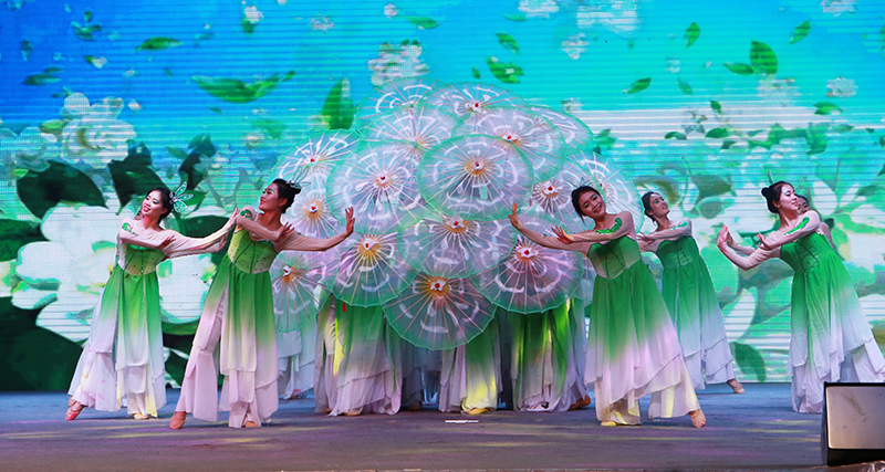 學(xué)院大學(xué)生藝術(shù)團(tuán)推送的節(jié)目詩朗誦《向祖國報(bào)告》和舞蹈《茉莉花開》參加了文藝匯演?!断蜃鎳鴪?bào)告》表現(xiàn)了我院青年昂揚(yáng)向上的風(fēng)采,表達(dá)了新時(shí)代青年不忘初心,繼往開來,為實(shí)現(xiàn)中國夢而奮斗的青春理想和堅(jiān)定信念。魯芬霞老師指導(dǎo)的《茉莉花開》,姑娘們靈動(dòng)的身姿傾情獻(xiàn)舞,整個(gè)畫面美輪美奐,展現(xiàn)了中國舞蹈的獨(dú)特魅力,得到了觀眾的一直好評(píng)。