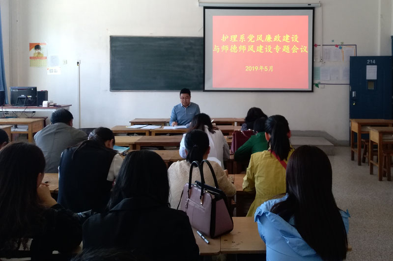 5月22日下午,護理系在明遠樓214教室召開黨風(fēng)黨紀與師德師風(fēng)教育專題工作會議。會議由系黨總支書記張建輝同志主持,全體教師參加了此次會議。