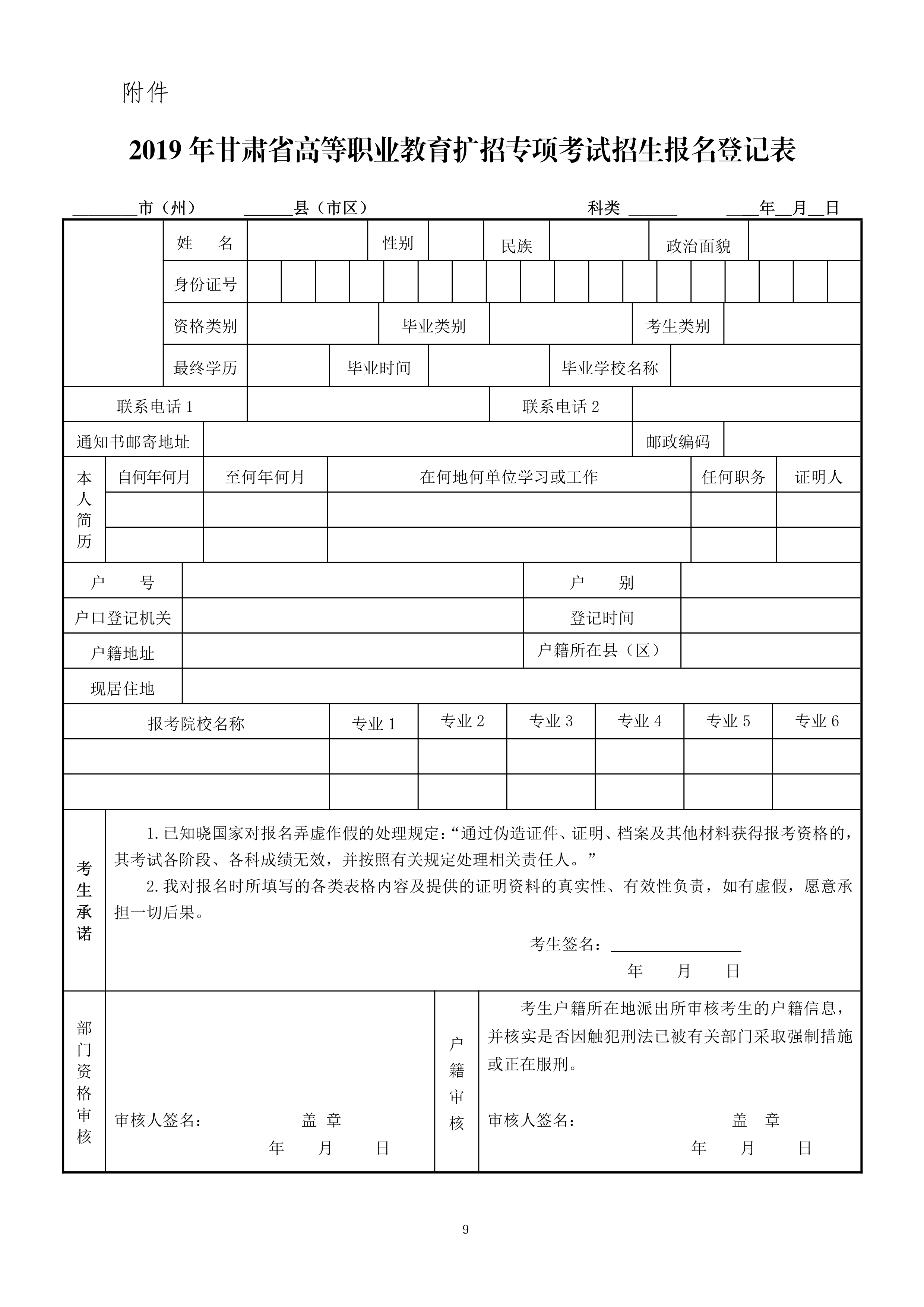 19年關(guān)于做好2019年甘肅省高等職業(yè)教育擴(kuò)招專項(xiàng)考試招生工作的通知