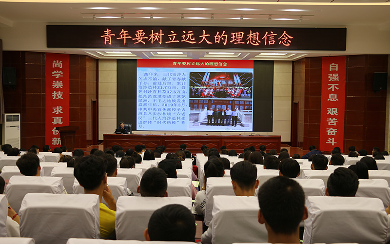 趙明以八步沙六老漢三代人治沙造林先進群體堅持38年治沙造林的事跡為開篇,向同學們闡述了理想信念的含義和對人生的重要意義,告誡廣大青年要有理想、有目標,并要為之而努力奮斗。
