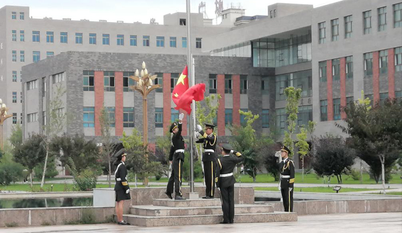 2019年8月26日,人文藝術(shù)教育系全體師生在學(xué)院圖書館東廣場舉行升國旗儀式。7點(diǎn)20分,伴隨著雄壯的國歌聲和護(hù)旗手鏗鏘有力的步伐,升旗儀式正式開始。