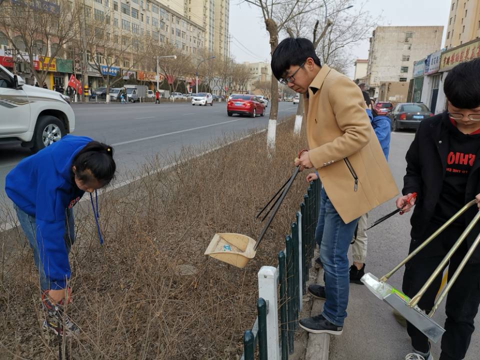 本次活動主要是對學院周邊街道進行清掃,努力為城市民眾營造干凈、整潔、舒適的生活環(huán)境。30多名志愿者手持垃圾袋,將果皮、紙屑、塑料袋、煙蒂、礦泉水瓶等垃圾撿起放入垃圾袋,青年志愿者們分散在街道邊開展清掃垃圾活動。每位志愿者都熱情高漲,他們不怕臟,不怕累,認真地把垃圾撿拾干凈,形成一道獨特的風景。路上遇見居民,他們還向居民講解保護環(huán)境的重要性,倡議要愛護我們美麗的家園,為大家創(chuàng)造一個良好的生活環(huán)境。