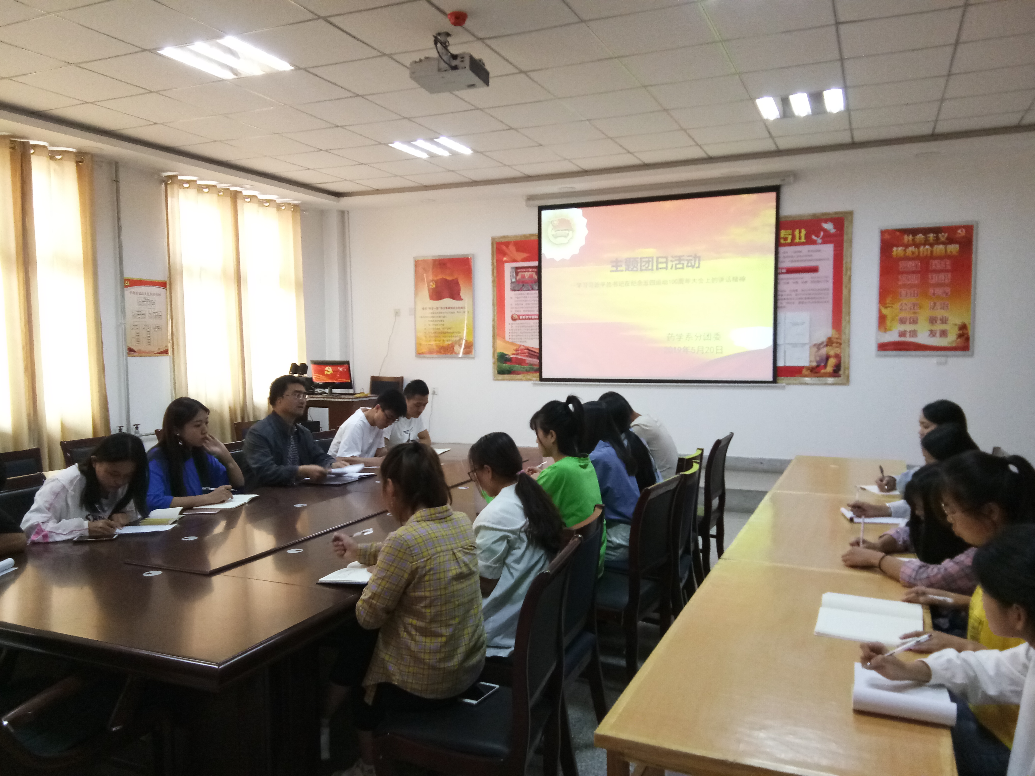 藥學(xué)系分團(tuán)委開展學(xué)習(xí)習(xí)近平總書記在紀(jì)念五四運(yùn)動(dòng)100周年大會(huì)講話精神主題團(tuán)日活動(dòng)