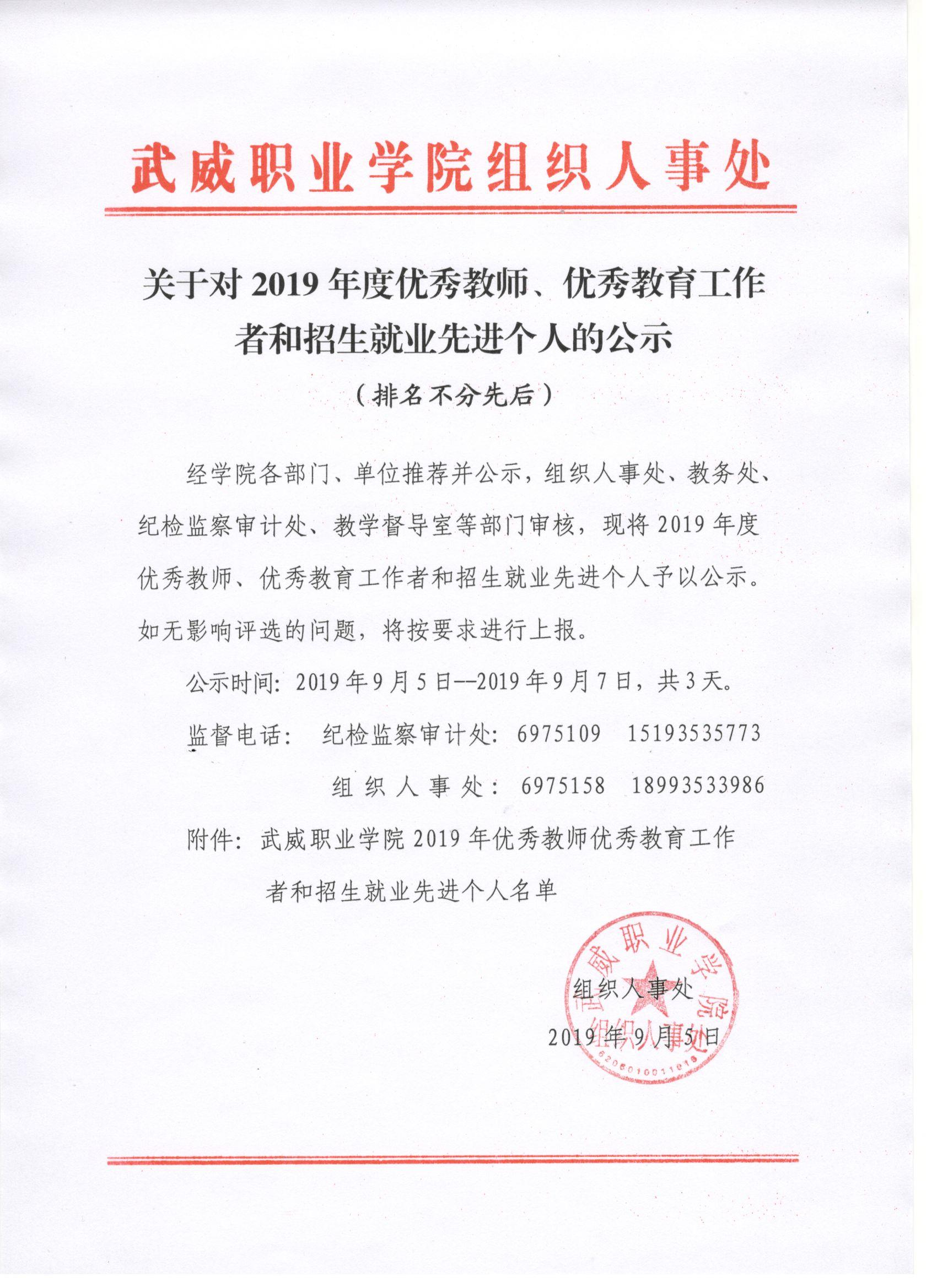 關(guān)于對2019年度優(yōu)秀教師、優(yōu)秀教育工作者和招生就業(yè)先進(jìn)個(gè)人的公示
