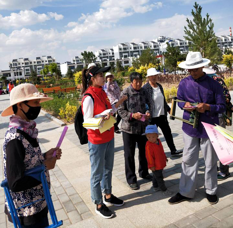 7月11日開始, 6名志愿者在指導(dǎo)老師的帶領(lǐng)下分別進(jìn)入倉巷社區(qū)銀城花園、天馬湖公園、古浪縣綠洲移民點(diǎn)、永豐鎮(zhèn)、發(fā)放鎮(zhèn)、天馬社區(qū)、清源鎮(zhèn)幸福家園社區(qū)、金沙社區(qū)、福利路社區(qū)、古城鎮(zhèn)祁山村、武南鎮(zhèn)、清水鎮(zhèn)等地開展了宣講實(shí)踐活動(dòng)。通過擺放展板、實(shí)地講解、發(fā)放禁毒防艾宣傳材料、問卷調(diào)查、個(gè)案訪談、資料收集等方式,深入了解實(shí)踐地禁毒防艾最新形勢(shì)、相關(guān)工作開展情況、存在的實(shí)際問題。