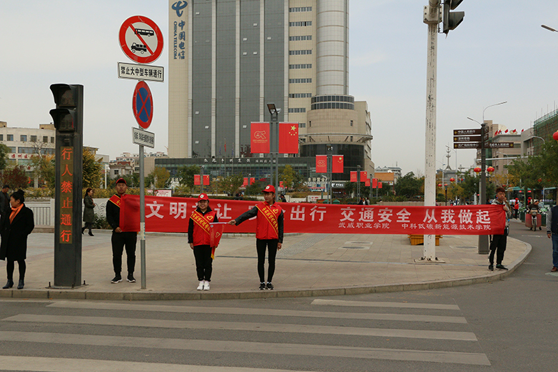 為進(jìn)一步增強(qiáng)廣大市民的文明交通意識,營造文明、暢通、安全、有序的道路交通環(huán)境,助力武威市創(chuàng)建全國文明城市,10月19日至20日,中科低碳新能源技術(shù)院志愿者到武威市步行街西口大十字路口和北關(guān)十字路口開展“文明交通 安全出行”志愿者服務(wù)活動。