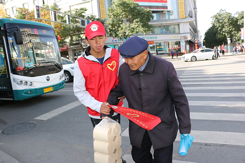 19日早上11點,正值城市交通的高峰時段,身穿志愿者服裝,手持“爭當(dāng)文明市民、爭創(chuàng)文明城市”交通指揮旗的志愿者們站在大十字和北關(guān)十字執(zhí)勤位點上,認(rèn)真履行文明交通志愿者職責(zé),協(xié)助交警耐心地引導(dǎo)過往行人和非機(jī)動車輛遵守交通規(guī)則。當(dāng)看到闖紅燈、等紅燈壓線等不文明交通行為時,志愿者們會上前進(jìn)行禮貌地勸導(dǎo);當(dāng)遇到行動不方便的老年人過馬路時,志愿者們會熱心地幫助老人安全通過馬路,在志愿者們的示范引領(lǐng)下,十字路口的交通秩序顯著好轉(zhuǎn)。