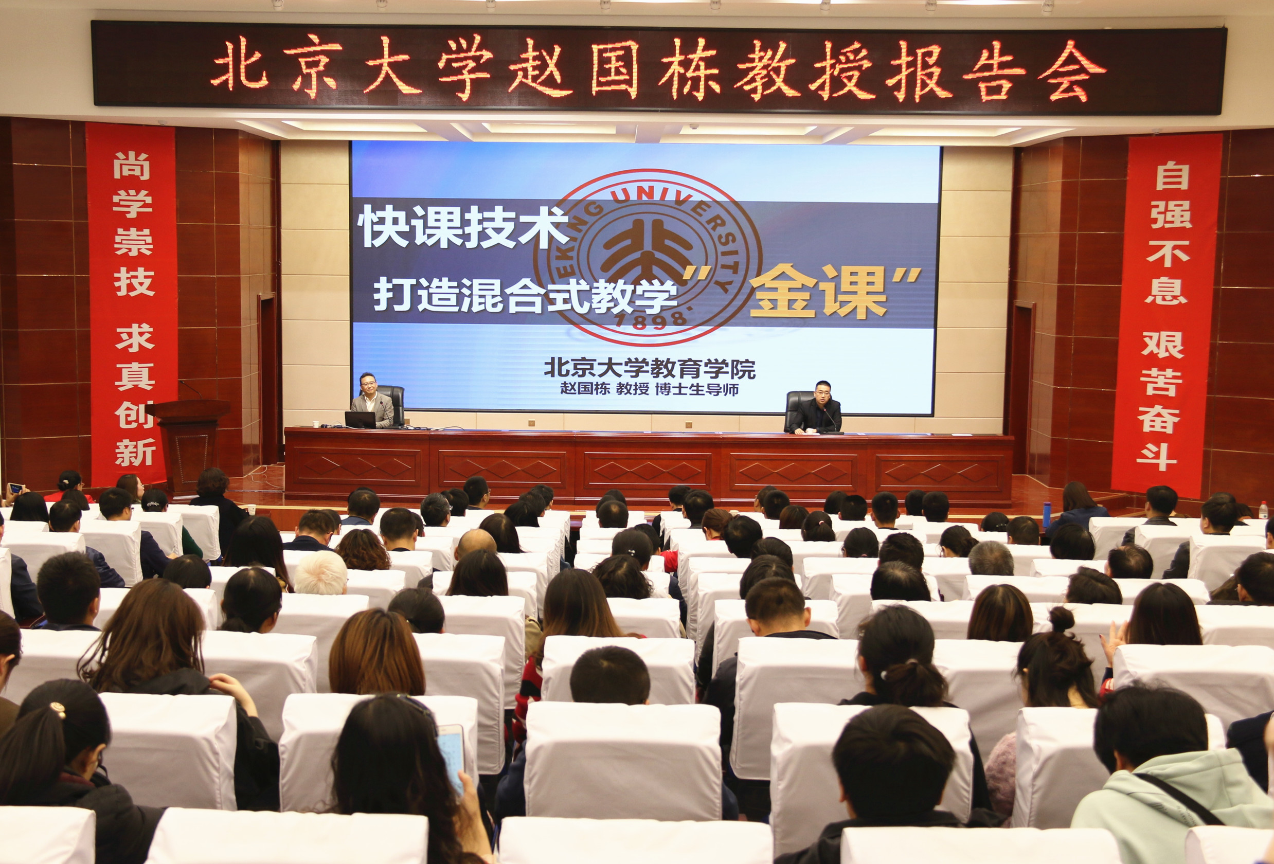 4月15日,北京大學(xué)博士生導(dǎo)師,微課技術(shù)實(shí)驗(yàn)室主任,“國(guó)際信息研究學(xué)會(huì)”(IS4IS)中國(guó)分會(huì)教育信息化專業(yè)委員會(huì)副主任, “中國(guó)開放式教育資源協(xié)會(huì)”(CORE)專家趙國(guó)棟教授,應(yīng)邀到學(xué)院作專題報(bào)告。 教務(wù)處副處長(zhǎng)張世亮主持報(bào)告會(huì),甘肅冶金職業(yè)技術(shù)學(xué)院、甘肅畜牧工程學(xué)院、武威職業(yè)教育集團(tuán)、蘭州交通大學(xué)新能源與動(dòng)力工程學(xué)院以及各系教師代表220人聆聽了報(bào)告。