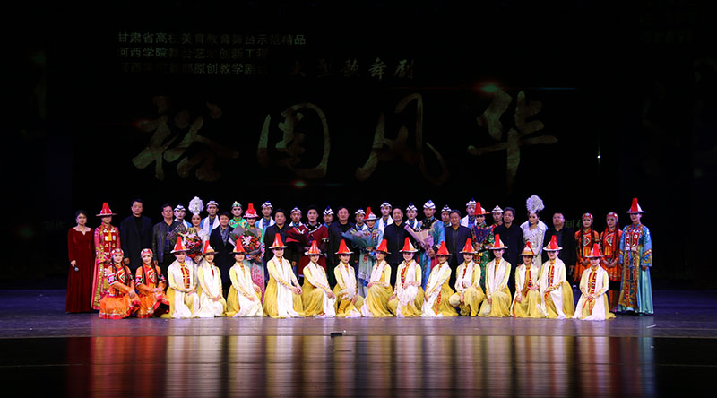11月12日晚,正當全國上下深入開展第二批“不忘初心、牢記使命”主題教育,隴原兒女深入學(xué)習(xí)習(xí)近平總書記視察甘肅重要講話和黨的十九屆四中全會精神,武威市全力創(chuàng)建全國文明城市、文化旅游名市之際,河西學(xué)院祁連藝術(shù)團大型原創(chuàng)歌舞劇《裕固風(fēng)華》在天馬劇院上演。