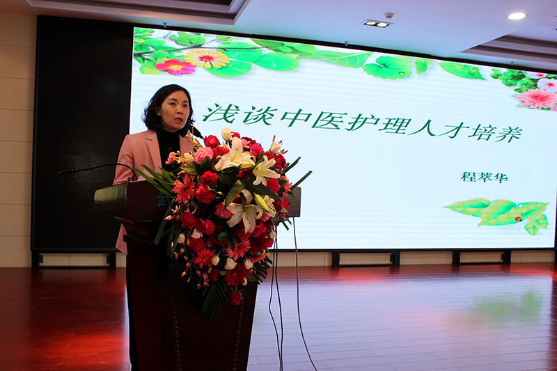 程萃華主講的題目是:《淺談中醫(yī)護理人才培養(yǎng)》。她說:中醫(yī)護理人才培養(yǎng)重點要做好以下幾個方面的工作:一要加強新入職護理人員的崗前培訓(xùn),注重中醫(yī) “仁、和、精、誠”核心價值觀的人文素養(yǎng)的培育;二要加強中醫(yī)基本理論和中醫(yī)操作技能培訓(xùn),用中醫(yī)理論指導(dǎo)中醫(yī)臨床護理工作;三要制定中醫(yī)護理人才引進計劃,著力引進高層次中醫(yī)護理人才,加大中醫(yī)護理人才的招聘比例;四要爭取醫(yī)院領(lǐng)導(dǎo)支持,落實中醫(yī)護理在人才引進和培養(yǎng)、教學(xué)科研、中醫(yī)護理技術(shù)推廣、中醫(yī)護理信息管理、重點??平ㄔO(shè)等方面的經(jīng)費投入,保障醫(yī)院的中醫(yī)護理工作向前發(fā)展。