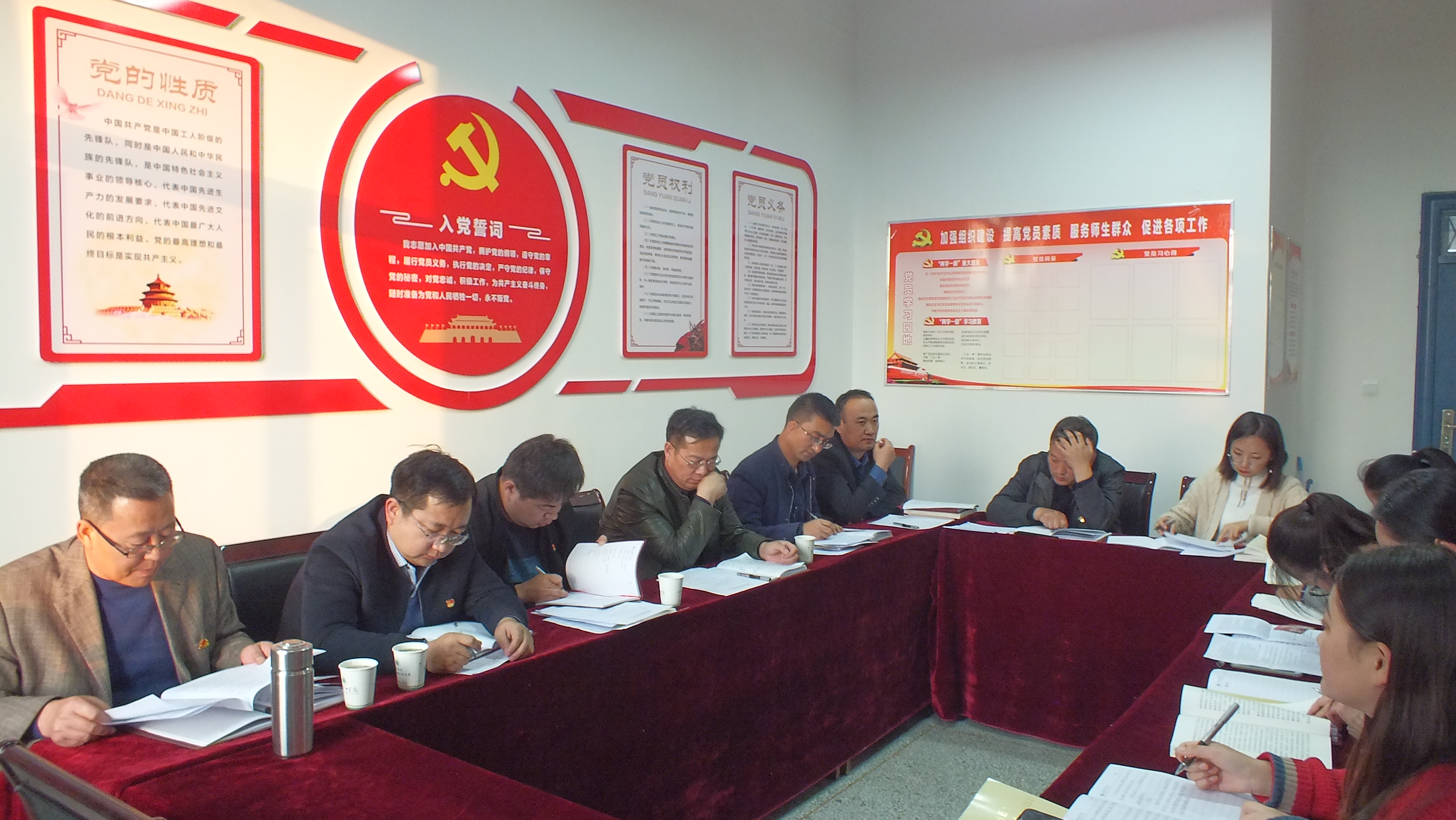 會(huì)議傳達(dá)學(xué)習(xí)了學(xué)院主題教育領(lǐng)導(dǎo)小組《關(guān)于在“不忘初心、牢記使命”主題教育中對照黨章黨規(guī)找差距工作的通知》、《中國共產(chǎn)黨章程》等有關(guān)內(nèi)容,全體黨員逐一對照黨章、《準(zhǔn)則》和《條例》,圍繞“18個(gè)是否”作了深刻檢視,并相互提出意見建議,做到了相互咬耳扯袖,提醒警醒。