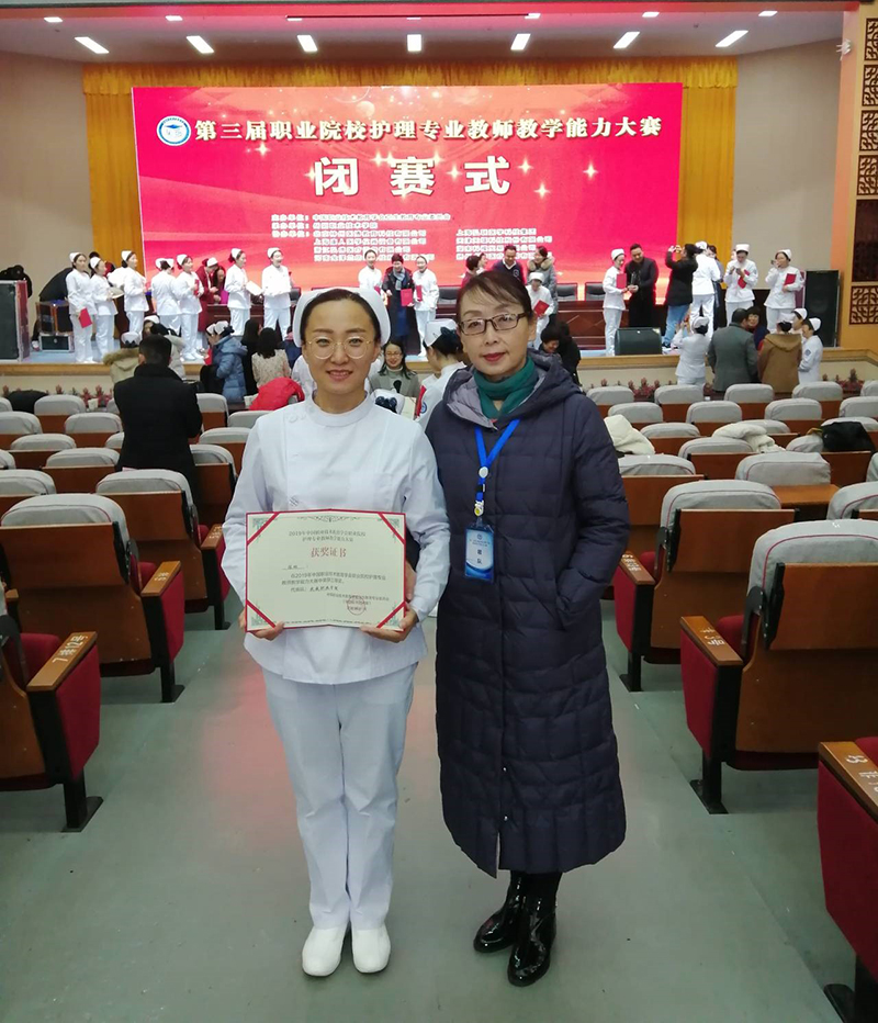第三屆職業(yè)院校護(hù)理專業(yè)教師教學(xué)能力大賽于2019年11月28-12月2日在湖南岳陽開賽,來自全國29個省、市、自治區(qū)103所職業(yè)院校的201名選手參加大賽。我院護(hù)理系主任韓曉萍帶隊,陳琳老師參加此次比賽。經(jīng)過三天多輪激烈比拼,陳琳喜獲三等獎。