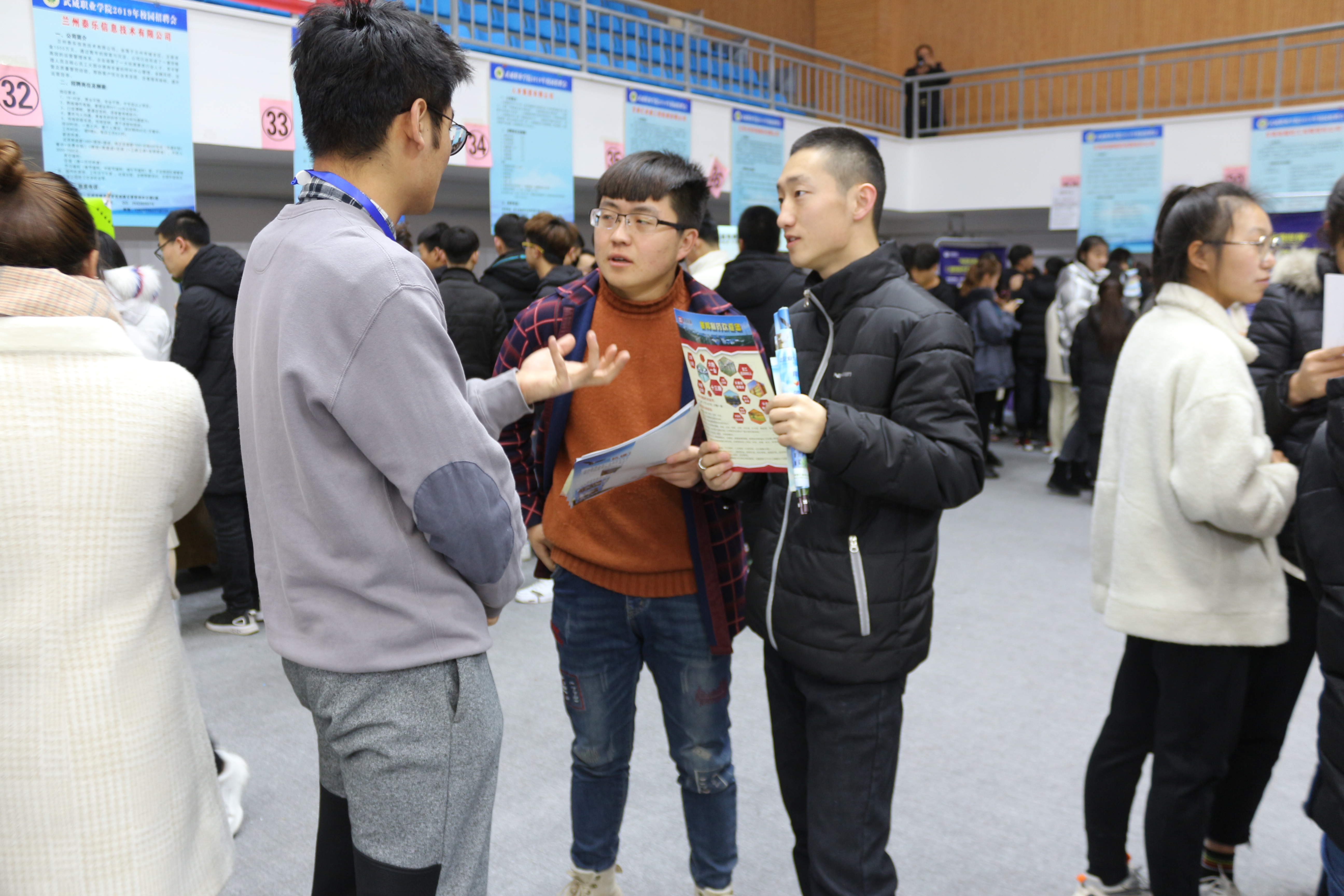12月13日,在學(xué)院體育館舉辦了武威職業(yè)學(xué)院2020屆畢業(yè)生校園招聘會,電子信息工程系2020屆219名畢業(yè)生參加了此次校園招聘會,同時2018級同學(xué)到現(xiàn)場進(jìn)行了觀摩學(xué)習(xí),此次招聘會,有118家企業(yè)到場參會,參加招聘的企業(yè)涵蓋教育培訓(xùn)、機械機電、能源化工、藝術(shù)設(shè)計、建筑房地產(chǎn)、商品貿(mào)易、金融證券、信息技術(shù)、文化服務(wù)等類別,共計提供崗位2100多個。畢業(yè)生們手持簡歷和就業(yè)三方協(xié)議穿梭于各招聘展位與招聘單位交流,招聘單位不遺余力向畢業(yè)生們積極推介。經(jīng)初步統(tǒng)計,我系畢業(yè)生此次招聘會達(dá)成了就業(yè)意向150多名,有98人在招聘會現(xiàn)場簽訂了就業(yè)三方協(xié)議。?