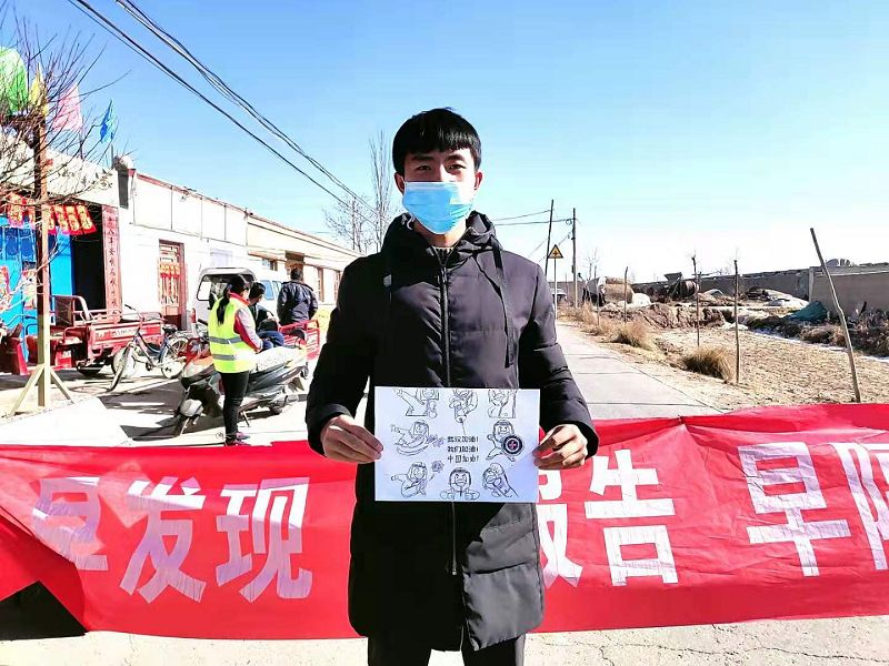 人文藝術教育系團委副書記孫國祥,家在甘肅省定西市通渭縣平襄鎮(zhèn)中林村,在近期的防控疫情狙擊戰(zhàn)中,自愿參與到當?shù)匾咔榉揽毓ぷ髦?,協(xié)助工作人員檢查過往車輛,并將他之前儲存的未拆封醫(yī)用口罩捐贈給一起的工作人員。他表示,縱有疫情可怕似虎,亦有青年為國奉獻。打贏這場大仗、硬仗,每一個中國人都應有防控疫情的責任,要有主動行動的自覺。武漢加油,中國加油!