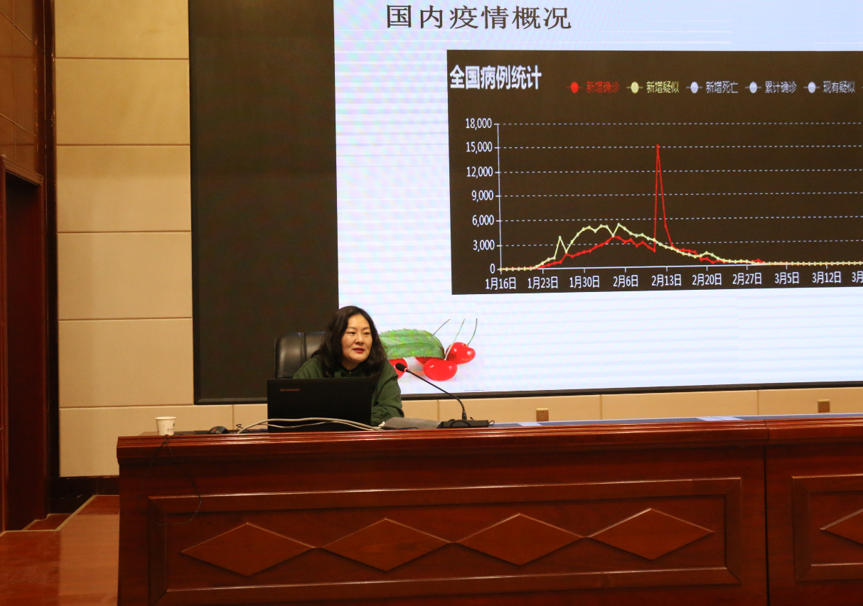 馬艷主任以《新冠肺炎疫情防控》為題,從國內(nèi)外疫情分析、對新冠肺炎的認識、大專院校新冠肺炎疫情防控要求措施以及開學(xué)后應(yīng)該注意哪些問題等幾個方面做了深入講解。