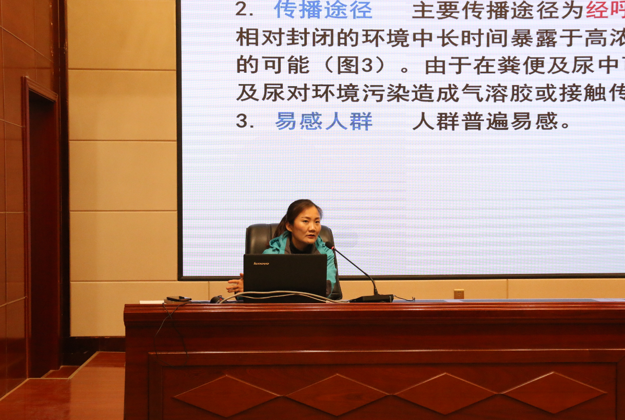 張翠玲主任以《學(xué)校新冠肺炎感染防控知識培訓(xùn)》為題,從疫情防控的物資儲備、個人防護措施以及如何做好手部衛(wèi)生和正確佩戴口罩等方面進行了詳細說明。