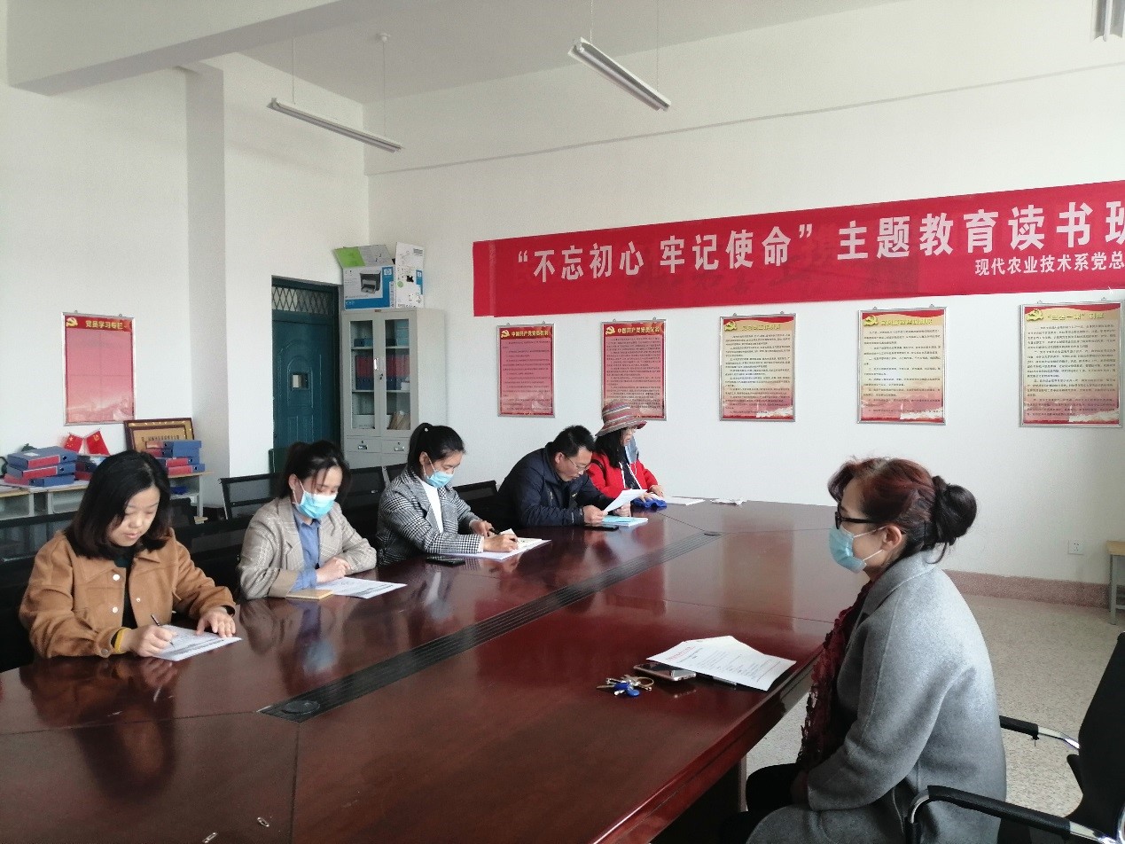 4月22日下午,現(xiàn)代農(nóng)業(yè)技術(shù)系在行樹樓教學(xué)區(qū)309會議室召開班主任工作會議,全體班主任及輔導(dǎo)員參加了此次會議,會議由現(xiàn)代農(nóng)業(yè)技術(shù)系黨總支書記晏素珍同志主持。