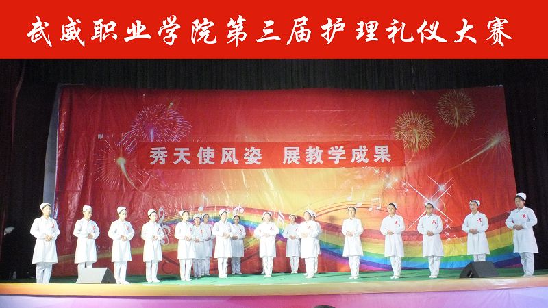 為推進校園文化建設(shè),強化學(xué)生專業(yè)思想,提升學(xué)生職業(yè)素質(zhì),12月27日下午,在學(xué)院大禮堂舉辦了“武威職業(yè)學(xué)院第三屆護理禮儀大賽”, 學(xué)院黨委副書記趙明、副院長潘玉華、副院長田迎春、教務(wù)處副處長賈龍應(yīng)邀出席本次活動,護理系書記張建輝、系主任韓曉萍及護理系1200多名師生觀看了比賽。