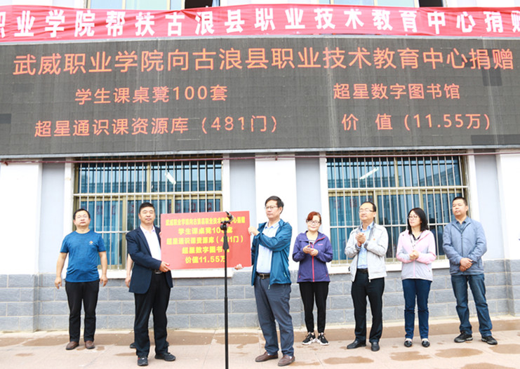 捐贈(zèng)儀式上,張開禮代表學(xué)院致辭,向古浪縣職業(yè)技術(shù)教育中心捐贈(zèng)100套學(xué)生課桌凳、超星數(shù)字圖書館、超星爾雅通識(shí)課資源庫(kù),價(jià)值11.55萬(wàn)元。