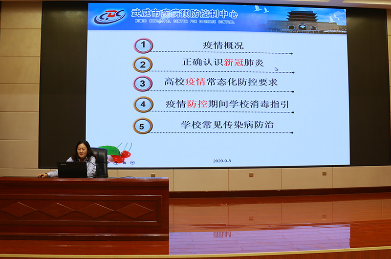 演練結(jié)束后,武威市疾控中心應(yīng)急辦公室主任、副主任醫(yī)師馬艷在大學(xué)生活動中心菁英廳做了秋季開學(xué)疫情防控知識、技能培訓(xùn)講座。