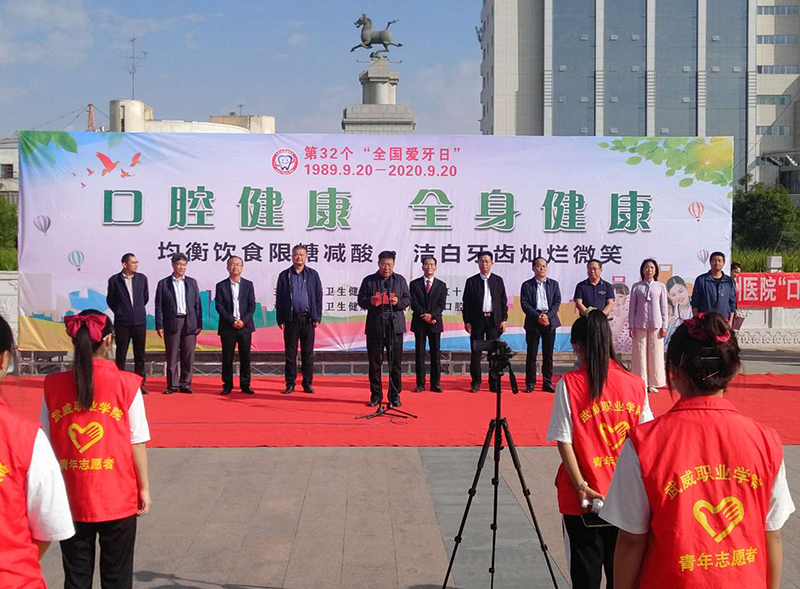 2020年9月20日是第32個(gè)“全國(guó)愛牙日”,為進(jìn)一步普及口腔健康知識(shí),結(jié)合今年全國(guó)愛牙日“口腔健康,全身健康”的主題,9月20日上午,由武威市衛(wèi)生健康委員會(huì)、武威市紅十字協(xié)會(huì)牽頭在文化廣場(chǎng)組織開展了“9.20全國(guó)愛牙日”主題宣傳活動(dòng)。學(xué)院黨委委員、副院長(zhǎng)王守云、醫(yī)學(xué)技術(shù)與信息管理系黨總支書記黃文源及醫(yī)學(xué)技術(shù)與信息管理系100多名口腔醫(yī)學(xué)技術(shù)專業(yè)學(xué)生參加了志愿服務(wù)活動(dòng)。
