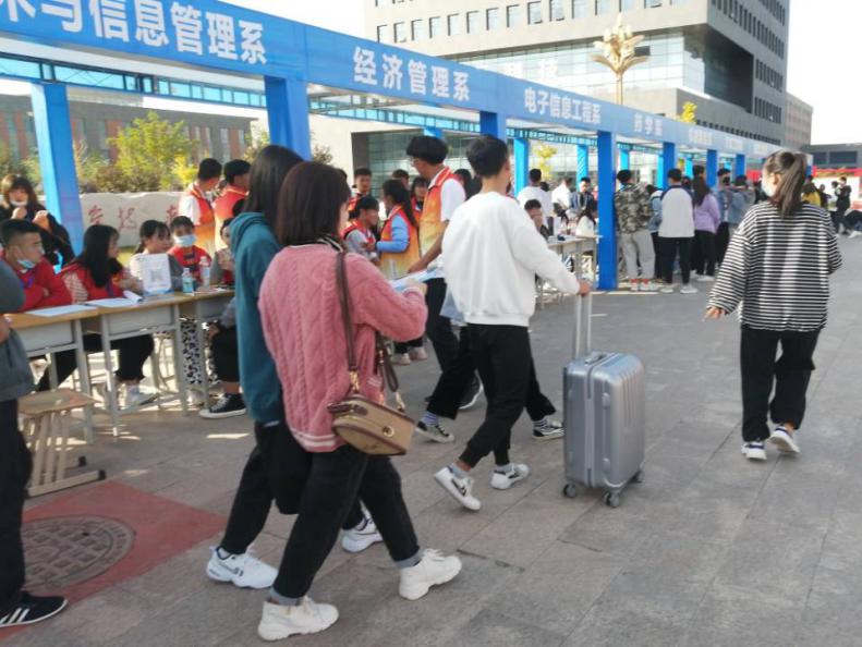 新生報到注冊在學院東門口進行,為了新生順利完成報到注冊,學院在火車站、汽車站分別設(shè)立了接待點,每一趟車到站,新生及家長一下車,眾多的迎新志愿者們帶領(lǐng)他們來到報到點,校門口還有我們的廣播員,提醒新生帶好隨身物品,學院還設(shè)置了家長休息區(qū),綠色通道,來到報到點還設(shè)有釘釘掃碼簽到,報到登記處、收費處,各項工作有序開展。每個環(huán)節(jié)均有各系志愿者熱情引導,悉心服務,為新生及家長提供新生報到和問題解答的服務。迎新工作如火如荼,到處都是忙碌的身影。院團委學生會以及各系團學會的學長學姐們不厭其煩地為新生、家長回答著他們提出的各種問題。還幫學弟學妹們拎行李,一路談笑風生,帶領(lǐng)她們領(lǐng)取床鋪、飯卡,辦理入住等一系列手續(xù),人頭攢動,秩序井然。